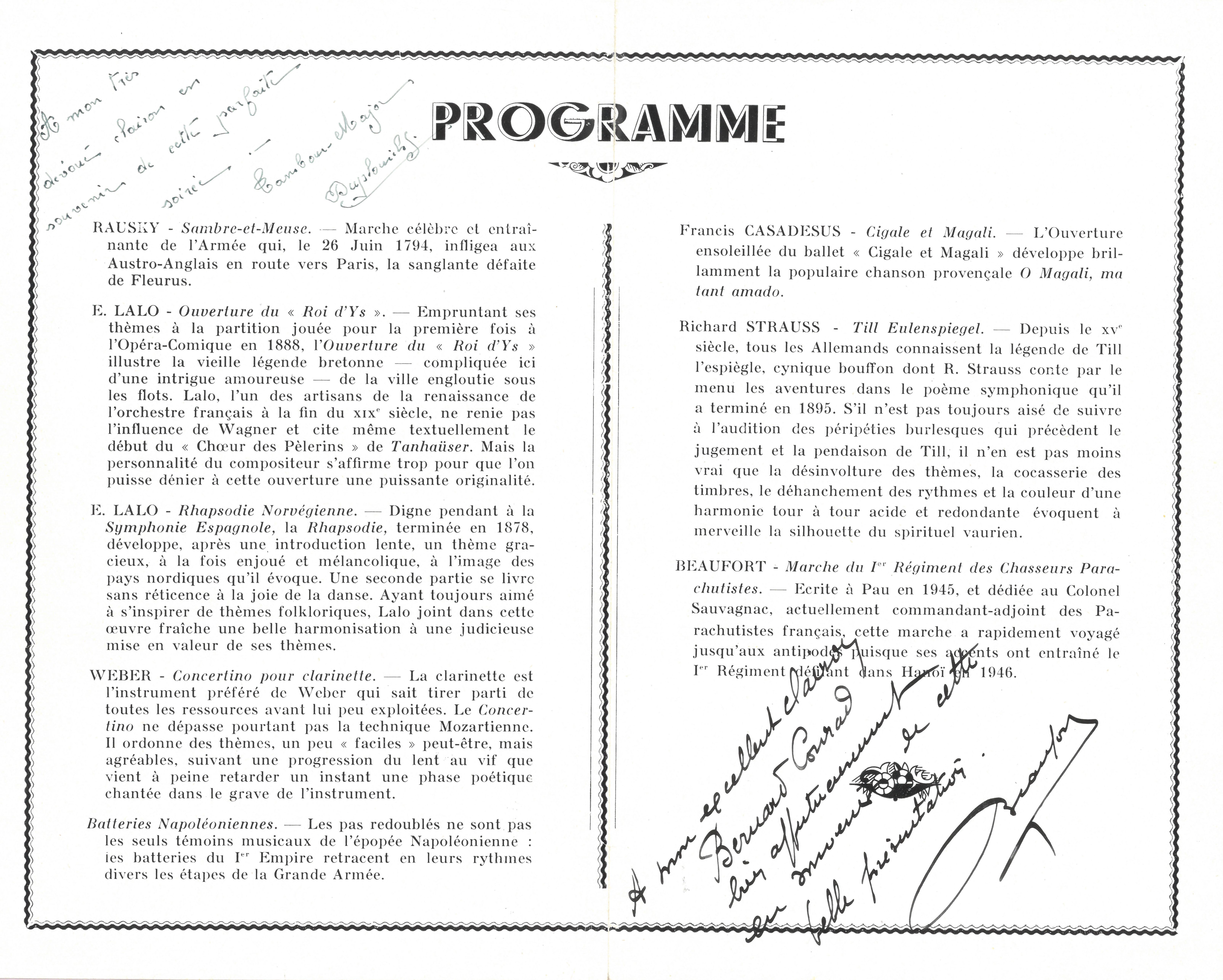 Programme du concert du 3 avril 1952